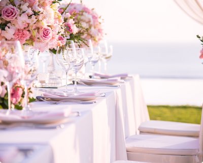 - Décoration lieu de réception : centres de table, compositions buffet, créations diverses…