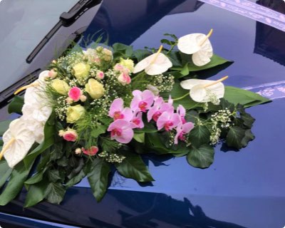 - Décoration voiture : composition capot, décor plage arrière, nœuds portières, tulle…
